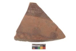 | Description / विवरण | Specimen of black on red ware with black decorative Lattice pattern and dots geometric painting. |