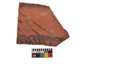 | Description / विवरण | Specimen of black on red ware with decorative geometric Oblique lines and arches painting. |