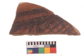 | Description / विवरण | Specimen of potsherd with black decorative geometric Net Pattern painting, Type Black on Red Ware . |