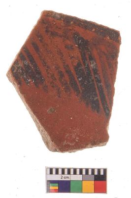 | Description / विवरण | Specimen of potsherd with black decorative geometric Linear painting, Type Black on Red Ware . |