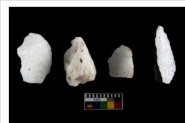 | Description / विवरण | Specimen of cores with weathered cortex and several broad fluted marks. Some of them are irregular in shape, whereas some are tapering at one end. |