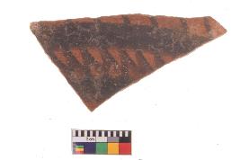 | Description / विवरण | Specimen of potsherd with black decorative geometric painting, Type Black on Red Ware . |