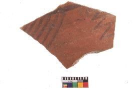 | Description / विवरण | Specimen of potsherd with black decorative geometric painting, Type Black on Red Ware . |