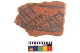 | Description / विवरण | Specimen of potsherd with decorative geometric painting. Type Black on Red ware |
