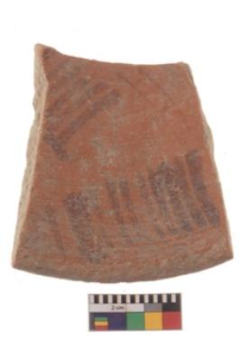 | Description / विवरण | Specimen of black on red ware with black decorative Parallel lines geometric painting. Q |