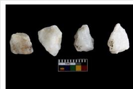 | Description / विवरण | Specimen of cores with weathered cortex and several broad fluted marks. Some of them are irregular in shape, whereas some are tapering at one end. |