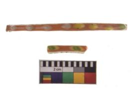 | Description / विवरण | Specimen n-2 having glossy red-brown surface with dotted design. They are circular in cross-section. |