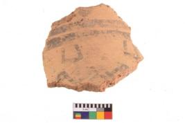 | Description / विवरण | Specimen of potsherd with decorative geometric painting. Type Black on Red ware |