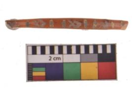 | Description / विवरण | Specimen n-1 having glossy red-brown surface with criss-cross pattern design. It is circular in cross-section. |