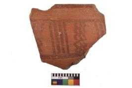 | Description / विवरण | Specimen of potsherd with decorative geometric painting. Type Red on Red Ware . |