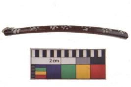 | Description / विवरण | Specimen n-1 having glossy brown surface with dotted floral pattern design. It is circular in cross-section. |