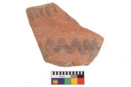 | Description / विवरण | Specimen of potsherd with decorative geometric painting. Type Black on Red ware |