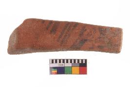 | Description / विवरण | Specimen of Potsherd black on red painted pottery. It is fine fabric in sharp contrast with painted design are executed in black pigment |