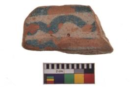 | Description / विवरण | Specimen having glossy white surface with blue painting on it. |