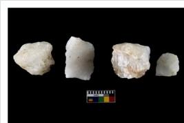 | Description / विवरण | Specimen of cores with weathered cortex and several broad fluted marks. Some of them are irregular in shape, whereas some are tapering at one end. |