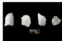 | Description / विवरण | Specimen of cores with weathered cortex and several broad fluted marks. Some of them are irregular in shape, whereas some are tapering at one end. |
