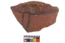 | Description / विवरण | Specimen of potsherd with black decorative geometric painting, Type Black on Red Ware . |