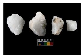 | Description / विवरण | Specimen of cores with weathered cortex and several broad fluted marks. Some of them are irregular in shape, whereas some are tapering at one end. |