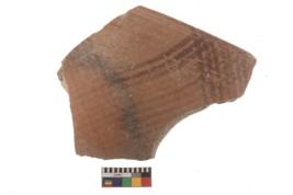 | Description / विवरण | Specimen of black on red ware with black decorative Lattice pattern geometric painting. |