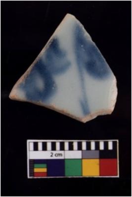 | Description / विवरण | Specimen having glossy white surface with blue painting on it. |