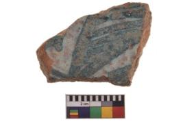 | Description / विवरण | Specimen having glossy white surface with blue painting on it. |