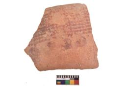 | Description / विवरण | Specimen of potsherd with decorative geometric painting. Type Red on Red Ware . |