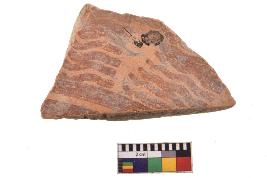 | Description / विवरण | Specimen of red on red ware with decorative geometric A groups of latticed bands painting. |