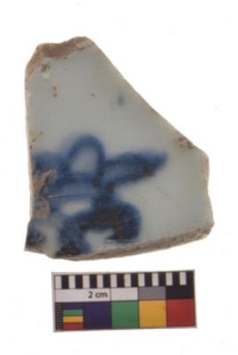 | Description / विवरण | Specimen having glossy white surface with blue painting on it. |