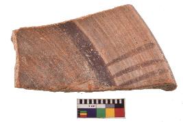 | Description / विवरण | Specimen of black on red ware with decorative geometric Vertical three lines painting. |