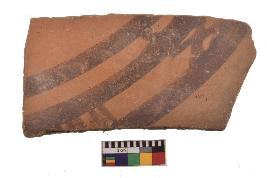 | Description / विवरण | Specimen of black on red ware with decorative geometric Parallel three lines and zig-zag painting. |