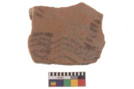 | Description / विवरण | Specimen of black on red ware with black decorative Parallel wavy lines geometric painting. |