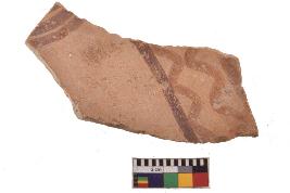 | Description / विवरण | Specimen of red on red ware with decorative geometric Double latticed lines in two horizontal bands painting. |
