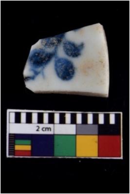| Description / विवरण | Specimen having glossy white surface with blue painting on it. |