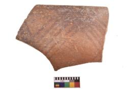 | Description / विवरण | Specimen of potsherd with decorative geometric painting. Type Red on Red Ware . |