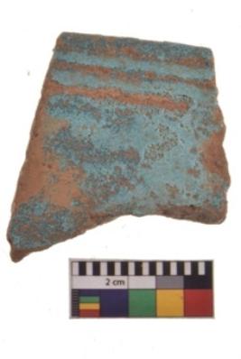 | Description / विवरण | Specimen having glossy blue surface with two engraved linear design. |