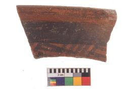 | Description / विवरण | Specimen of potsherd with black decorative geometric Net Pattern painting, Type Black on Red Ware . |
