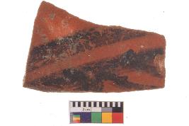 | Description / विवरण | Specimen of potsherd with black decorative geometric Linear painting, Type Black on Red Ware . |