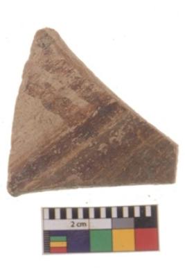 | Description / विवरण | Specimen of black on red ware with black decorative Parallel intersecting lines geometric painting. |