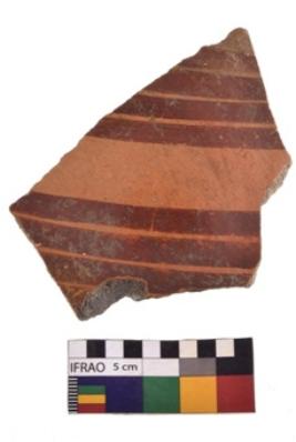 | Description / विवरण | Specimen of potsherd with decorative geometric painting. Type Red on Red Ware . |