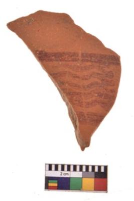 | Description / विवरण | Specimen of potsherd with decorative geometric painting. Type Red on Red Ware . |