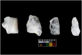 | Description / विवरण | Specimen of cores with weathered cortex and several broad fluted marks. Some of them are irregular in shape, whereas some are tapering at one end. |