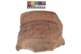 | Description / विवरण | Specimen of black on red ware with decorative geometric Lines slanting to right with strokes at right angles painting. |