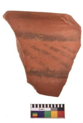 | Description / विवरण | Specimen of potsherd with decorative geometric painting. Type Black on Red Ware . |