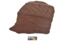 | Description / विवरण | Specimen of red ware with graffiti over the surface. Licised lattice |