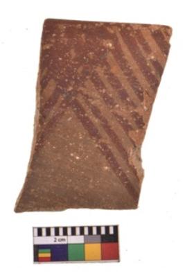 | Description / विवरण | Specimen of potsherd with decorative geometric painting. Type Red on Red Ware . |