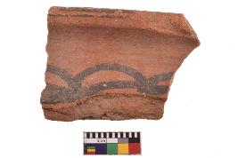 | Description / विवरण | Specimen of black on red ware with decorative geometric Its decorated with two horizontal bands with sets of arches painting. |