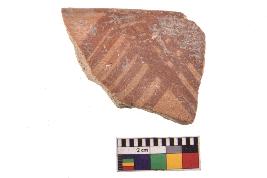 | Description / विवरण | Specimen of red on red ware with decorative geometric Latticed diamonds set painting. |