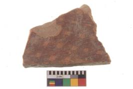 | Description / विवरण | Specimen of black on red ware with black decorative Lattice pattern geometric painting. |