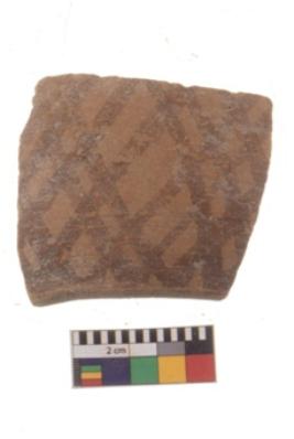 | Description / विवरण | Specimen of black on red ware with black decorative Lattice pattern geometric painting. |