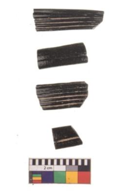 | Description / विवरण | Specimen n-4 having horizontal grooves and glossy black surface. They are circular in cross-section. |